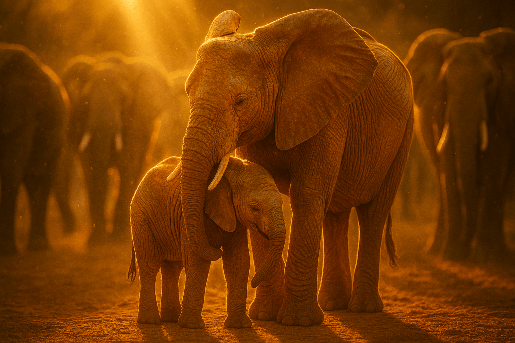 Но самое удивительное – это коллективная забота. Все самки в стаде участвуют в воспитании слонят, создавая своего рода «детский сад». Молодые слонихи учатся материнству, наблюдая за старшими, а опытные самки помогают неопытным матерям. Когда слоненок заболевает или слабеет, все стадо замедляет темп движения, подстраиваясь под возможности малыша.