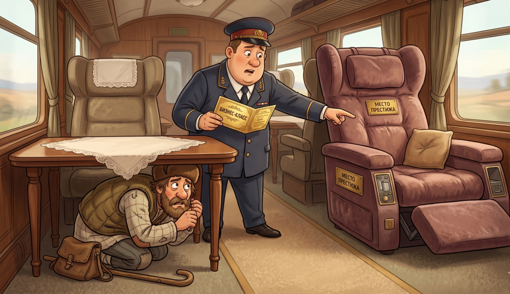Рассказывают о крестьянине, которому было нужно поехать в поезде в большой город. Продавец билетов спросил его, хочет ли он купить обычный билет или же билет бизнес-класса – с более удобными креслами и обслуживанием в вагонах. Крестьянин задумался ненадолго и решил, что заслужил хотя бы раз в жизни порадовать себя поездкой на высшем уровне.