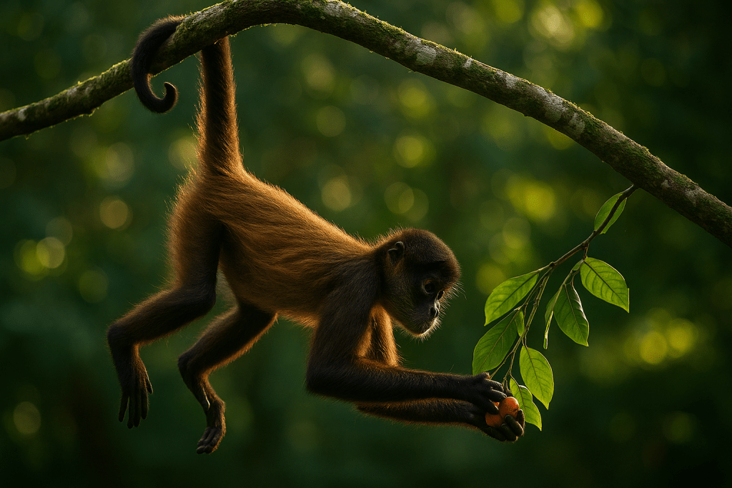 Начнём с обезьян. Их длинный цепкий хвост – это настоящая пятая рука! Обезьяна может висеть на ветке, держась только хвостом, а обеими руками срывать плоды. Иногда смотришь, как они висят на ветке и раскачиваются, и кажется, что Создатель подарил им этот дополнительный хват ради радости — чтобы они могли играть и чувствовать себя свободными под небесным сводом леса.