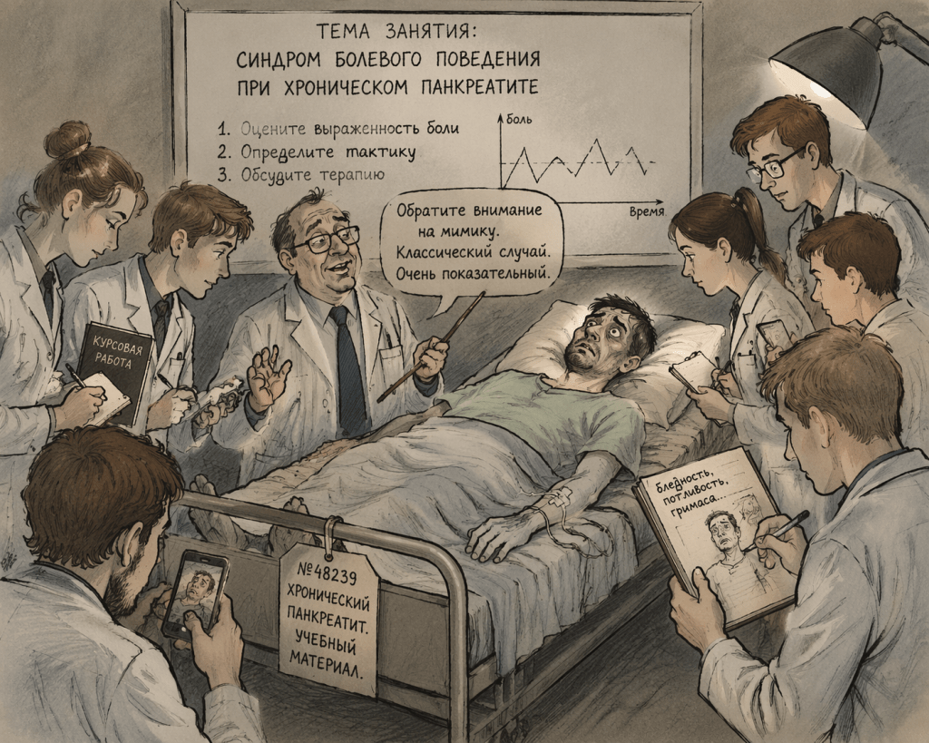 Студенты наклоняются ниже, рассматривают, задают вопросы. В этот момент больной чувствует себя не человеком, а экспонатом в музее или редким зверем в зоопарке, запертым в «стеклянную клетку» чужого любопытства. Кто дал им право на такое унижение?